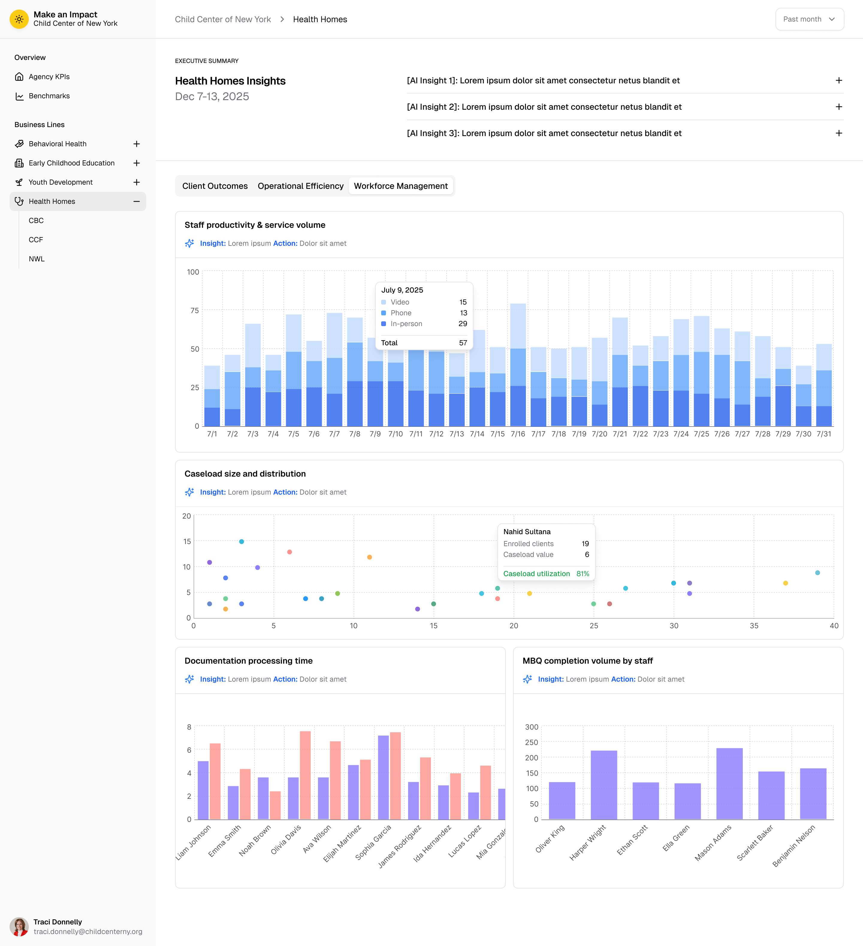Make an Impact (MAI) brings together 400 community-based organizations (CBOs) in the non-profit sector. The Child Center of NY, MAI's anchor organization, had already demonstrated strong data capabilities through PowerBI dashboards built from their Welligent EHR data and other data sources.